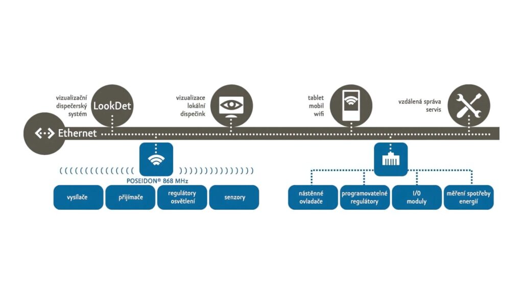 Systém POSEIDON® od ENIKA.CZ slouží k řízení osvětlení, stínění a dalších technologií v budovách. Představuje bezdrátové, uživatelsky přívětivé a energeticky úsporné řešení. Vyniká svou maximální kompatibilitou a snadnou integrací do nadřazených systémů automatizace budov.